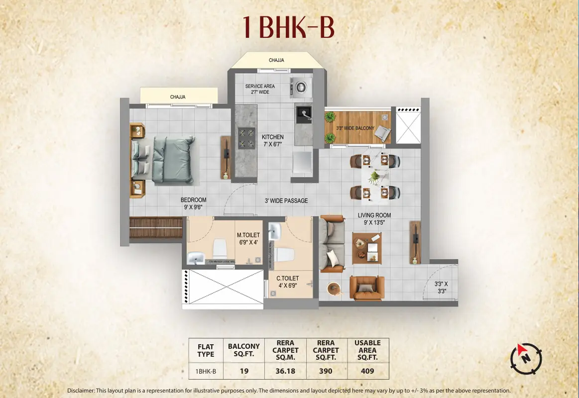 ✅ 1BHK – 409 Sq.ft. – ₹32.99L + Taxes (Parking Extra)