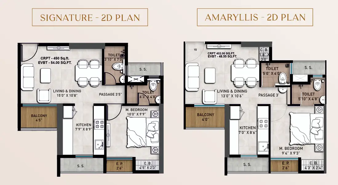 - 2BHK Carpet 555 Price ; 43,50,000