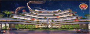 Upper Level: Indoor games, meditation/yoga rooms, 3D video parlour, cafeteria with library, 12D theatre